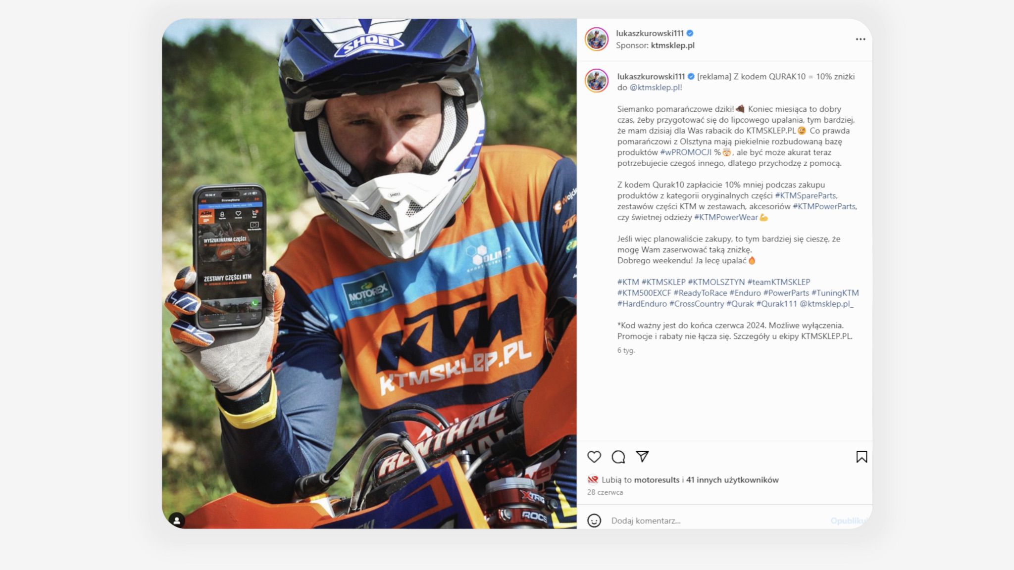 - ✔️ Collaboration with motorcycle influencers strengthened the image of KTMSKLEP.PL and increased brand awareness. ✔️ Strengthened the image of KTMSKLEP.PL and increased brand awareness.