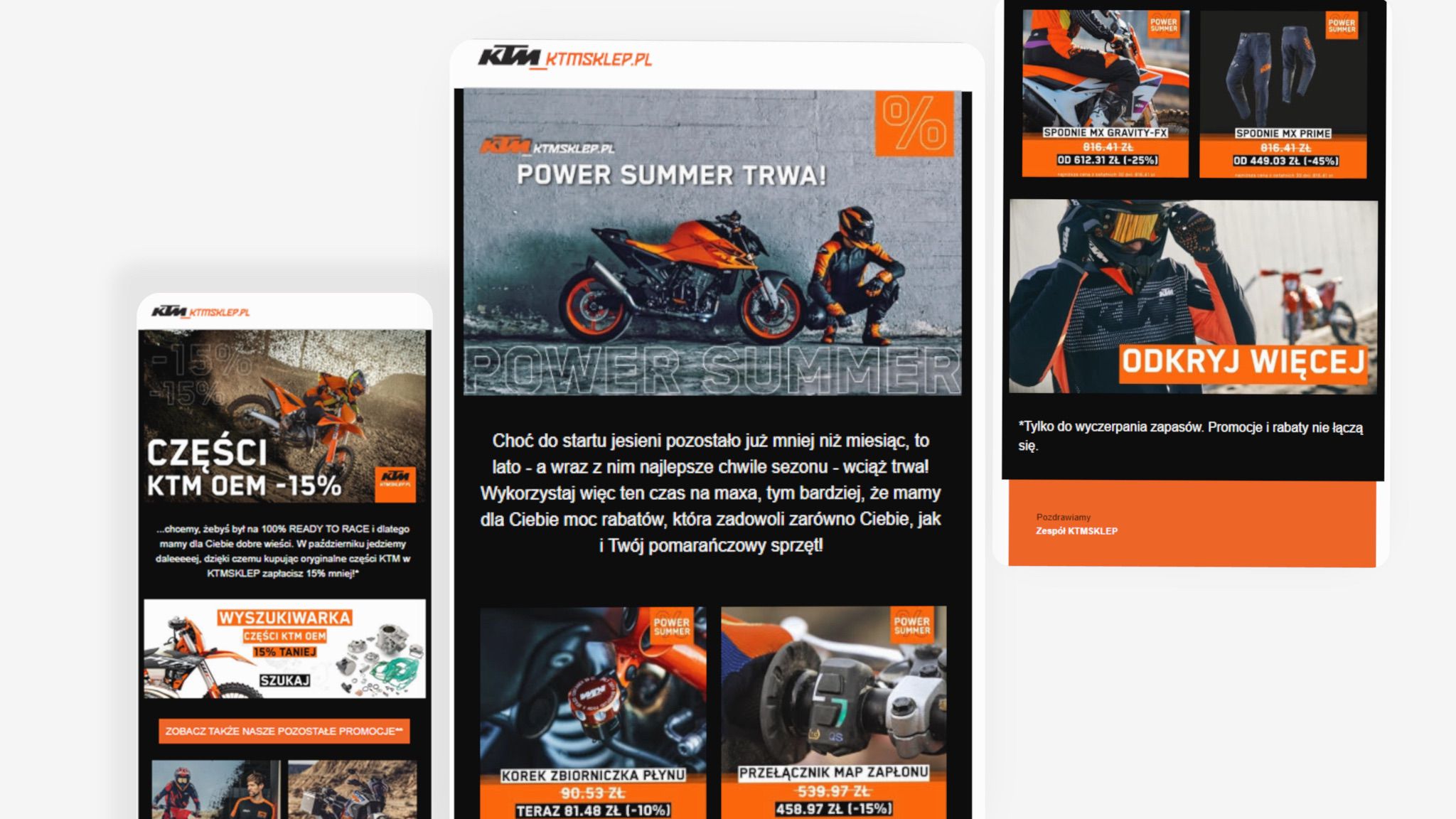 - ✔️ We started our efforts for KTMSKLEP.pl with market and competition analysis. We conducted market segmentation, tailoring marketing messages to different target groups. We developed cohesive campaign plans covering email marketing, social media, and content marketing. We continuously monitored campaign results and optimized them. We also improved the website UX, adding delivery time information, SMS and email notifications, and offering the ability to track order status. ✔️ Market analysis