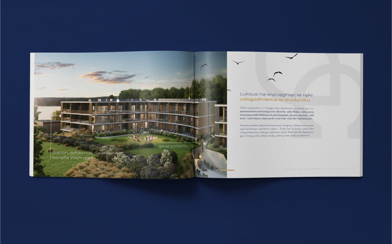 - ✔️ Investment catalog. Designing an exclusive catalog for Omega Lake Apartments, showcasing the high quality and unique features of the apartments, with an elegant graphic layout and carefully crafted content. ✔️ Investment catalog.