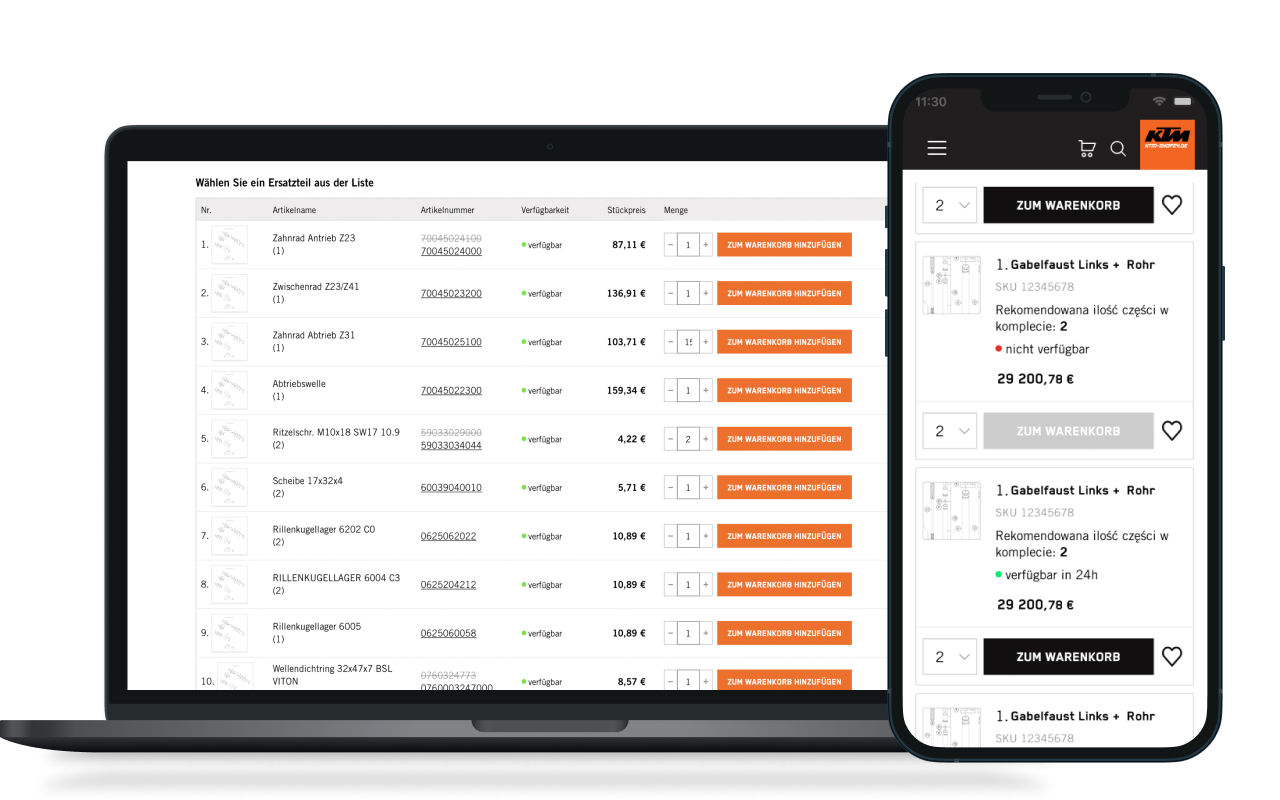 This innovative solution simplified the previously complex and time-consuming ordering process for spare parts, benefiting both customers and dealers alike. By 2022, ordering parts became even easier, faster, and more intuitive with our custom-built tool - SPF (Spare Parts Finder) by Revinners, which we implemented for a German KTM dealer.