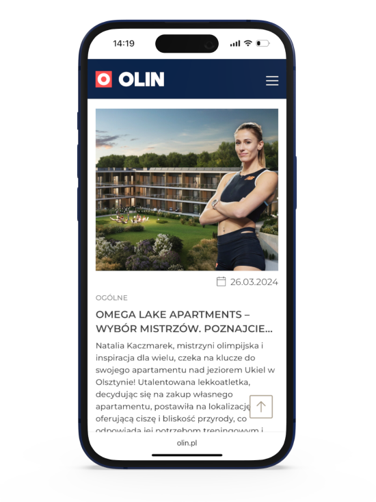 We developed a comprehensive strategy, implemented a website, and launched marketing activities for Olin - a leader in the real estate industry. We worked on projects for the Omega Lake Apartments complex and the Industrial Park, which set new standards in this segment.